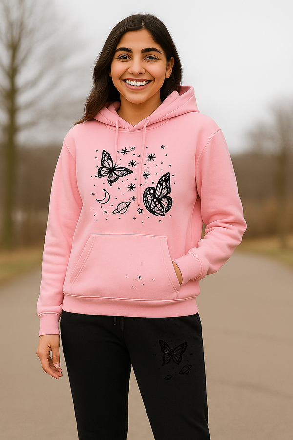 Moon Star Butterfly Printed Pink Winter Tracksuit
